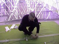 Artysta posługujący się w swoich instalacjach światłem, zbudował w Łaźni  świetlną strukturę wpisaną w przestrzeń wydłużonej sali pomieszczenia studyjnego. Na powierzchni przeszło 40 mkw.  wykonał konstrukcję składającą się z blisko 300 lamp jarzeniowych. Na szklanej podstawie pokrywającej całą powierzchnię zbudował rytmiczną strukturę z powtarzających się form geometrycznych sięgających prawie 350 cm wysokości.