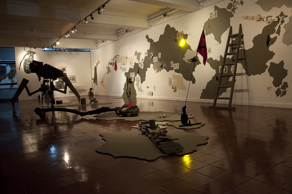 Przed nieco ponad dziesięcioma laty, będąc świeżo na pierwszym roku studiów, wybrałem się na wystawę, w której udział brali Mauricio Bravo, Mario Z i Víctor Hugo Bravo. Odbywała się ona w sali z łukiem w galerii sztuki Papieskiego Uniwersytetu Katolickiego w Chile. Tym, co w pierwszej kolejności zaskoczyło mnie jako osiemnasto- czy dziewiętnastolatka, było sugerowane tam rozszerzenie definicji sztuki, nie tylko za pośrednictwem samych instalacji i eksponowanych obiektów, ale też poprzez agresywny, kłujący w oczy i kontestatorski wygląd każdego dzieła. Jeśli istnieje sztuka Punk, to bez wątpienia właśnie ona – myślałem, idąc wzdłuż rzędu noży, które Víctor ustawił obok swoich znanych, pokrytych kamuflażem obiektów. Moje przypadkowe odkrycie uzupełniały czarno-białe twarze ustawione jako cel na strzelnicy Mauricia, a obraz Maria – odwrotnie – ukazywał kreskówkową atomówkę ponad neoklasycystycznym przedstawieniem dziewczyny.