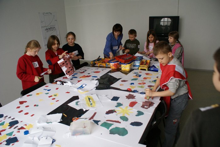 Warsztaty artystyczne inspirowane aktualną wystawą, skierowane do wszystkich zorganizowanych grup szkolnych. Uczestnicy spotkania mają szansę na zapoznanie się z różnorodnymi formami artystycznymi oraz na zrealizowanie własnych twórczych projektów. W czasie kilkugodzinnych zajęć uczestnicy biorą udział w działaniach plastycznych, w czasie których tworzone są kompozycje malarskie i rzeźbiarskie, w warsztatach kreatywnego i spontanicznego myślenia, a podczas warsztatów wideo mogą się zapoznać z technikami i możliwościami, jakie dają multimedia.